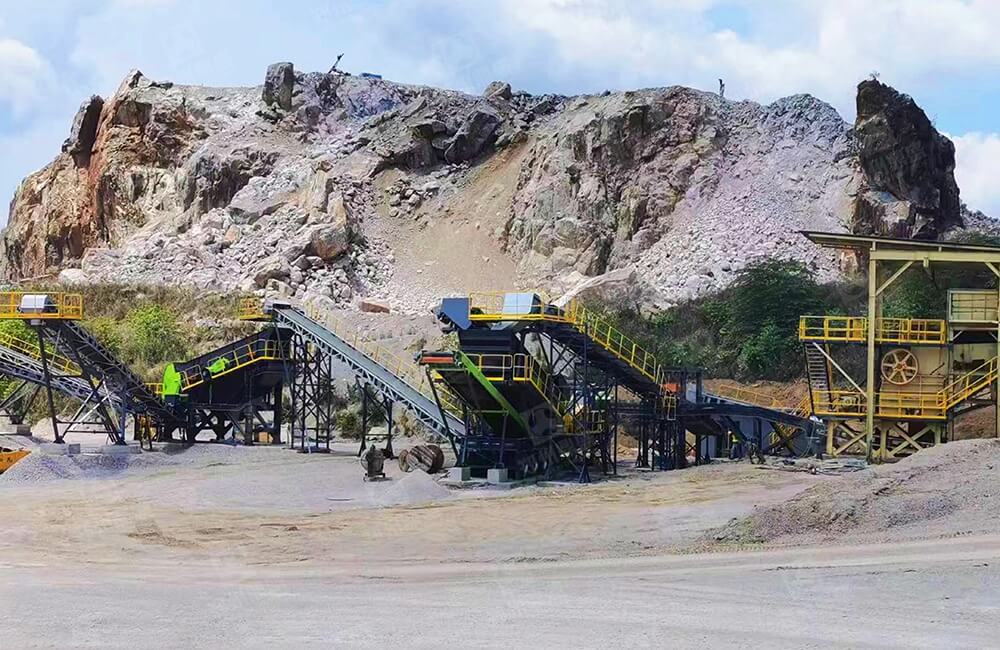 該項(xiàng)目以花崗巖為原料,采用粗碎顎破模塊、中碎圓錐篩分模塊、細(xì)碎圓錐篩分模塊,進(jìn)料粒度≤700mm,成品要求0-5mm、5-8mm、8-12mm,工藝設(shè)計(jì)合理且交貨周期短,現(xiàn)場(chǎng)經(jīng)過簡(jiǎn)單的吊裝,模塊化組裝,按照周期短,省去現(xiàn)場(chǎng)制作混凝土基礎(chǔ)的費(fèi)用和時(shí)間,快速投入生產(chǎn)。