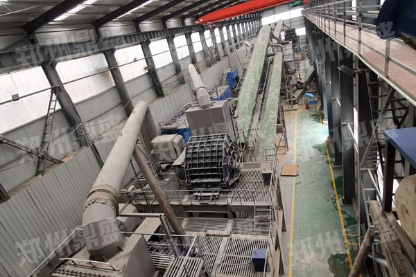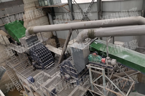 料倉內的物料進入振動篩分喂料機后,喂料機前端篦條將物料分成兩種物料<70mm和>70mm,其中<70mm經皮帶輸送機送至除土篩,經除土篩篩分出>10mm和<10mm兩種物料,其中<10mm的作為渣土經由輸送機輸送至廢渣區(qū)存儲,>10mm被送至ZPC1820錘式破碎機后篩分上料皮帶;>70mm的物料經過溜槽直接進入ZPC1820錘式破碎機進行粗碎。