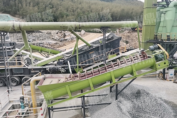 鄭州鼎盛在湖南建設(shè)的時產(chǎn)150噸花崗巖制砂生產(chǎn)線包括了給料、破碎、制砂、洗砂等模塊,其中洗砂模塊采用的XL螺旋式洗砂機。