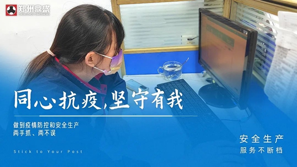 鄭州第73號通告發(fā)出后,鄭州鼎盛總部各職能部門切實履行工作職責,通過居家辦公等形式積極投入工作,嚴格落實好疫情防控期間的值班帶班制度,做到疫情防護不松懈、工作推進不松勁,全力以赴為公司疫情防控和生產運營等做好服務保障工作。