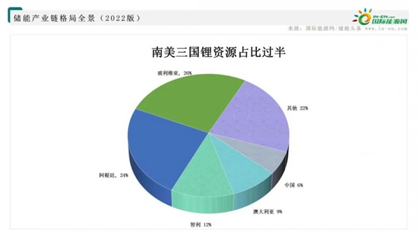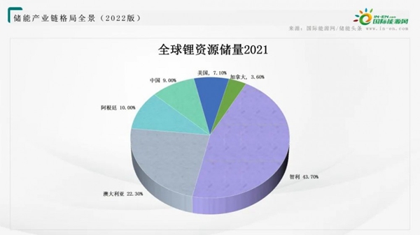 2021年較新數(shù)據(jù)顯示,當(dāng)前世界已探明的鋰礦資源中,智利、澳大利亞、阿根廷、中國、美國5個(gè)國家儲(chǔ)量占比達(dá)到85.73%。