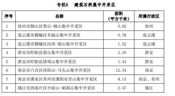 (二) 建筑石料集中開采區(qū)在徐州、連云港、淮安、南京、鎮(zhèn)江和常州等資源有保障、 開發(fā)有基礎(chǔ)的地區(qū)劃定 8 個建筑石料集中開采區(qū),力爭形成數(shù)個年生產(chǎn)規(guī)模在 500 萬噸以上的建筑石料開采基地。落實國土空間規(guī)劃管控要求,鼓勵引導(dǎo)集約化、規(guī)模化開采建筑石料。建筑石料集中開采區(qū)內(nèi)礦山必須按照綠色礦山標(biāo)準(zhǔn)要求建設(shè)。