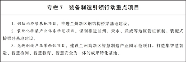 (七)實(shí)施交通裝備制造引領(lǐng)行動(dòng)。著眼公路交通行業(yè)全產(chǎn)業(yè)鏈發(fā)展需求,以發(fā)展智能建造、推廣綠色建材及裝配式建筑為方向,以建設(shè)平安百年品質(zhì)工程為目標(biāo),大力實(shí)施強(qiáng)工業(yè)、強(qiáng)科技行動(dòng),提升交通裝備制造創(chuàng)新能力,拓展交通裝備制造產(chǎn)業(yè)鏈條,培育交通裝備制造龍頭企業(yè),提升公路建設(shè)標(biāo)準(zhǔn)化、工廠化、工業(yè)化水平,推動(dòng)交通裝備制造產(chǎn)業(yè)成為落實(shí)強(qiáng)工業(yè)、強(qiáng)科技行動(dòng)的重要?jiǎng)?chuàng)新領(lǐng)域。(省交通運(yùn)輸廳、省工信廳牽頭,省發(fā)展改革委、省科技廳、省政府國(guó)資委按職責(zé)分工負(fù)責(zé))