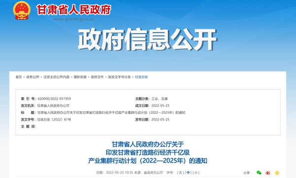 5月23日,甘肅省人民政府辦公廳印發(fā)《甘肅省打造路衍經(jīng)濟(jì)千億級(jí)產(chǎn)業(yè)集群行動(dòng)計(jì)劃(2022—2025年)》(以下簡(jiǎn)稱(chēng)《計(jì)劃》),推進(jìn)交通運(yùn)輸與文化旅游、現(xiàn)代農(nóng)業(yè)、工業(yè)園區(qū)、現(xiàn)代物流等關(guān)聯(lián)產(chǎn)業(yè)深度融合發(fā)展,打造路衍經(jīng)濟(jì)千億級(jí)產(chǎn)業(yè)集群。