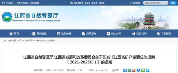日前,江西省自然資源廳、發(fā)改委印發(fā)《江西省礦產資源總體規(guī)劃(2021-2025年)》(下附全文),提出至2025年,江西戰(zhàn)略性與優(yōu)勢礦產實現(xiàn)新的找礦突破,資源保障能力不斷增強。礦業(yè)開發(fā)布局與結構進一步優(yōu)化,礦產資源開發(fā)利用水平明顯提升,礦業(yè)產業(yè)集群進一步壯大。