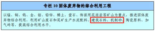 《規(guī)劃》明確,根據(jù)各地區(qū)資源稟賦、環(huán)境承載力、市場需求、運輸半徑等條件,合理確定區(qū)內砂石采礦權總量、最低開采規(guī)模,有序投入砂石采礦權。積極引導有條件地區(qū)劃定集中開采區(qū)。在集中開采區(qū)內,積極推動建設儲量規(guī)模1500萬噸以上、生產規(guī)模 100萬噸/年以上的礦山,促進砂石資源規(guī)模開發(fā)。 合理確定制砂所需建筑用石料采礦權出讓政策,保障機制砂原材料供應。在保證產品質量和生態(tài)安全的前提下,鼓勵利用礦山尾礦與廢石生產機制砂,節(jié)約資源,提高礦山固體廢物綜合利用水平。
