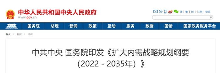 《綱要》指出,堅定實施擴大內(nèi)需戰(zhàn)略、培育完整內(nèi)需體系,是加快構(gòu)建以國內(nèi)大循環(huán)為主體、國內(nèi)國際雙循環(huán)相互促進的新發(fā)展格局的必然選擇,是促進我國長遠發(fā)展和長治久安的戰(zhàn)略決策。