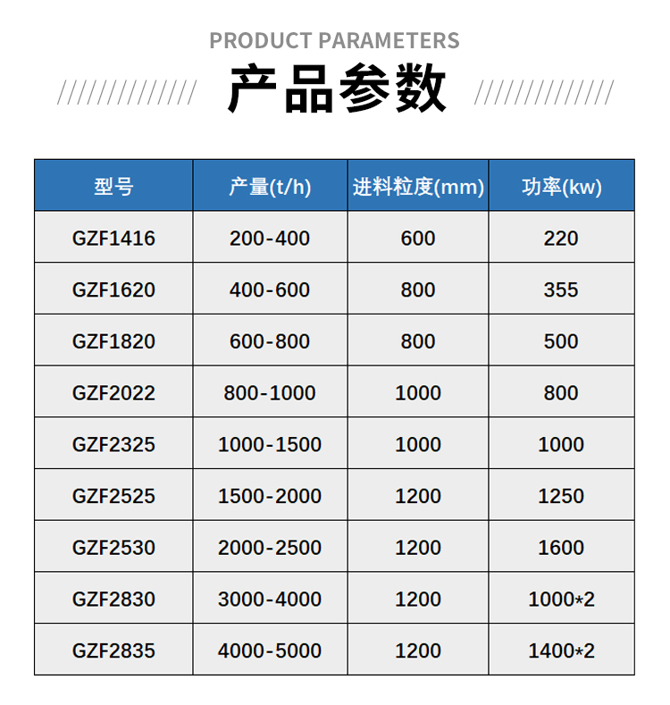 進料粒度:≤2000mm