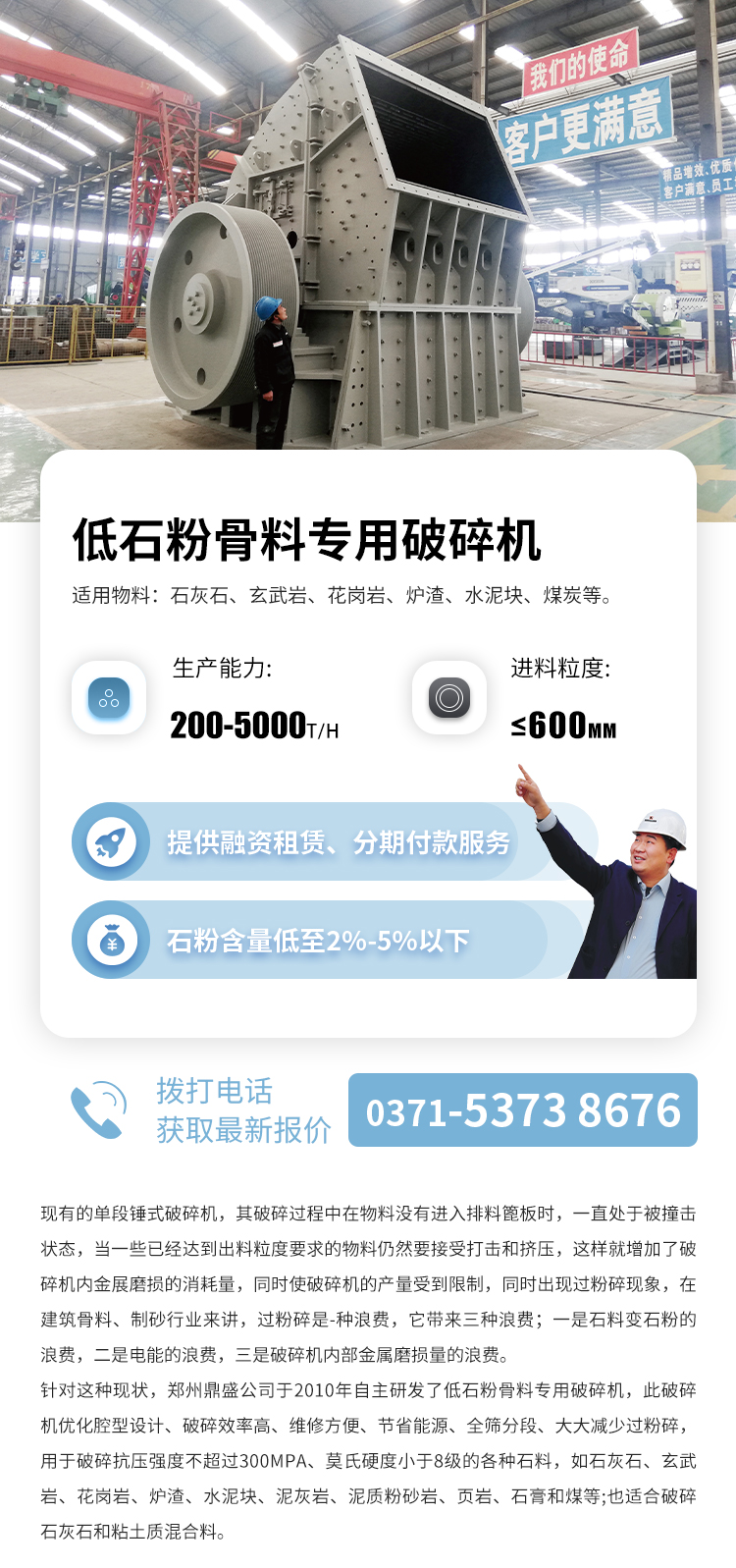 2010年,湖南遠大水泥有限責任公司從鄭州鼎盛購買了1臺型號為DLPC2022-1的單給料輥單轉子的大型單段錘式破碎機。