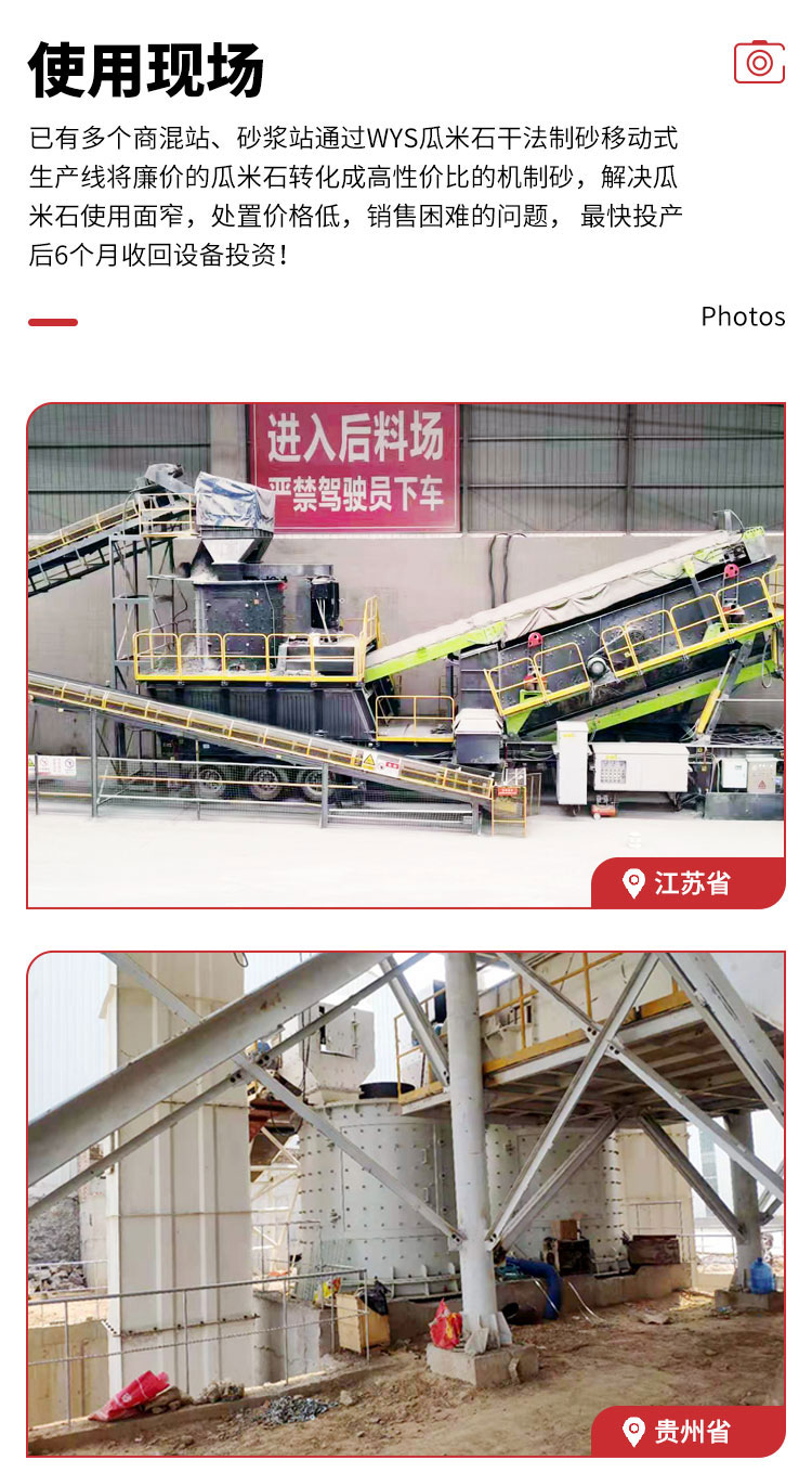 該項目為某大型建材集團商混站補充項目,對生產過程中產生的瓜米石進行制砂,解決瓜米石爆倉停產、使用面窄、處置價格低、銷售困難的問題,實現(xiàn)經(jīng)濟效益較大化。